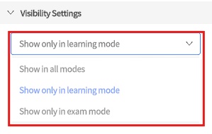 | Show only in learning mode | Visible only during learning, automatically hidden during exams. Used for guidance and instructional tips. |