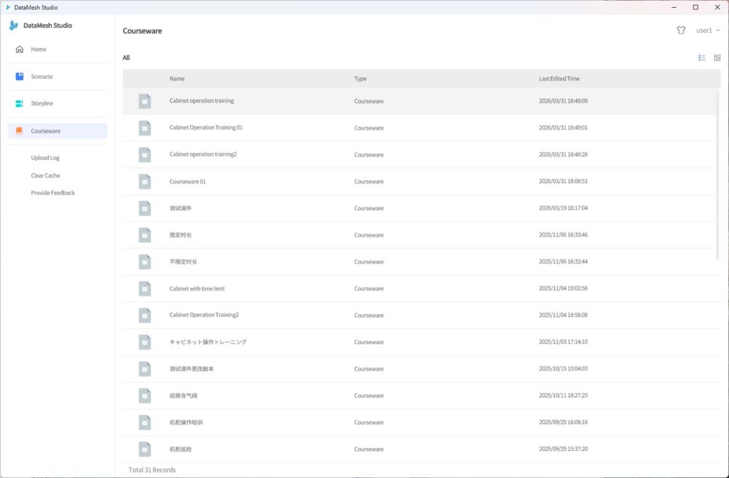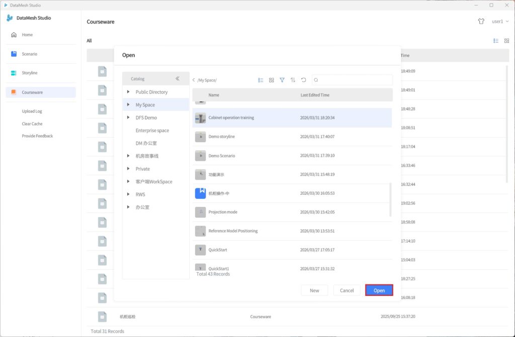 1. Open courseware: Open the courseware with the bound scenario in DataMesh Studio.