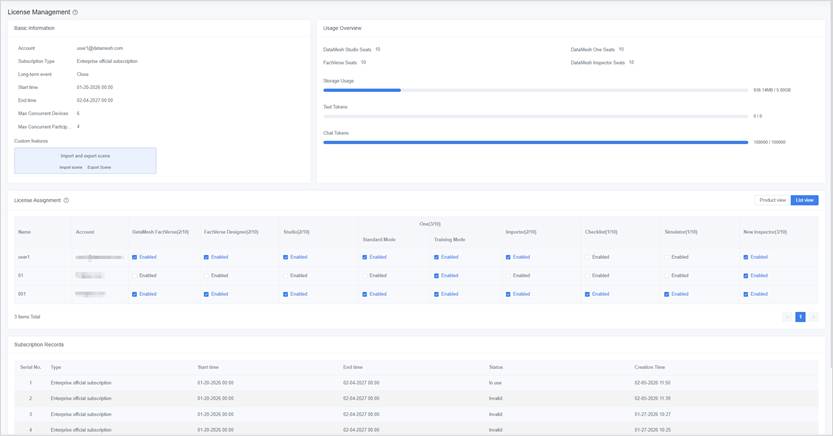 Note: The number of assignable users in the DataMesh FactVerse and client depends on the maximum number of FactVerse users in the enterprise’s current valid license and the number of client subscriptions.
