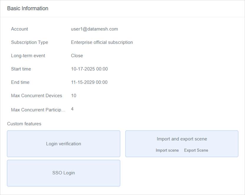 DataMesh FactVerse provides a series of enterprise management functions to manage and configure users, roles, departments, and other related settings within the enterprise.