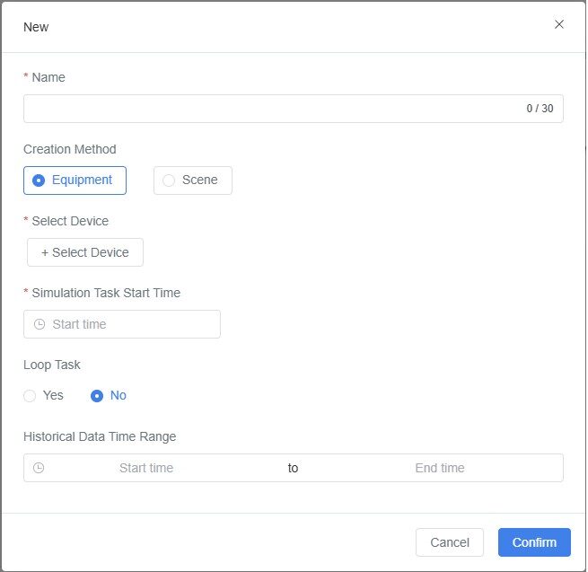 Ensure that the selected device or scene already has historical data; otherwise, the simulation task cannot be executed.