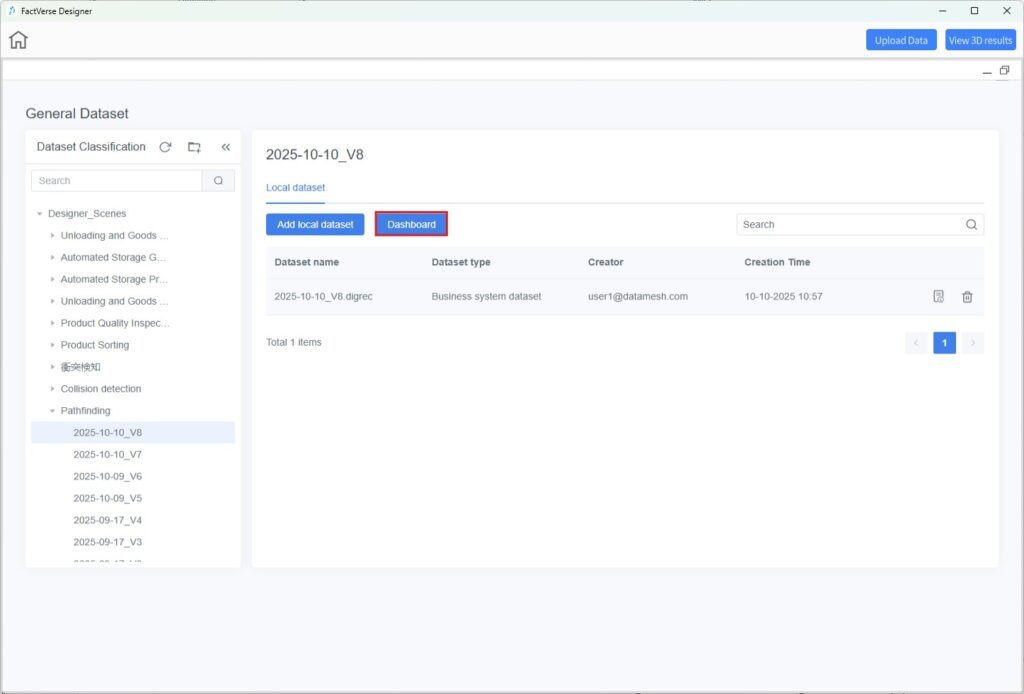 Results are automatically saved to the General Dataset area for later viewing and analysis. - Validate Results: