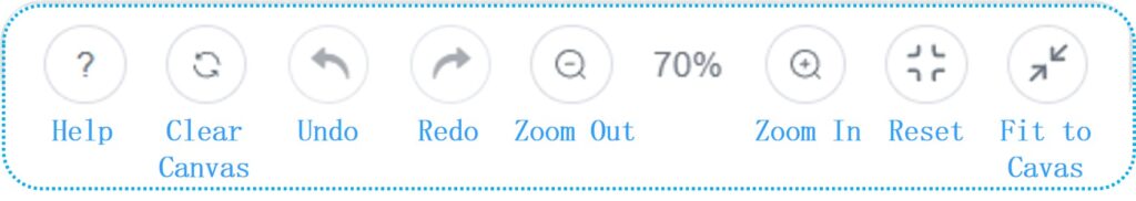 : Adjust the canvas scale for overview or detail. - Reset : Restore the default canvas view (size and scale).