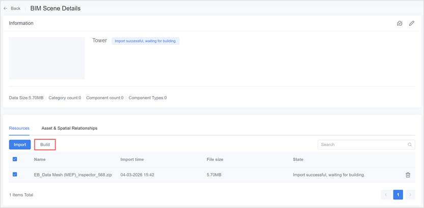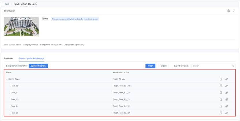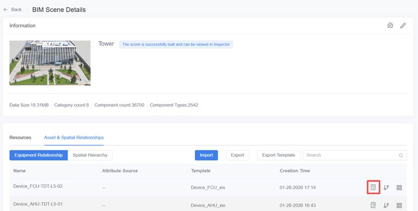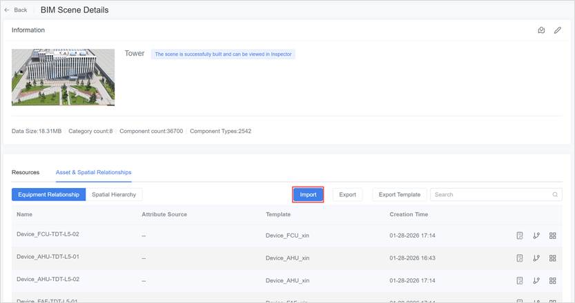 - If not filled: the system will not bind automatically; you can set it manually after import via BIM Scene Details → Asset & Space Relationships.
